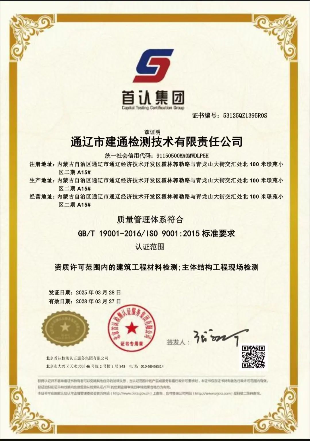 ISO9001质量管理体系的通过,体现了建通检测公司对产品和服务质量的极致追求。公司秉持科学、敬业精神,构建完善质量管控体系,精细化管理各环节,为客户和行业提供坚实保障与良好声誉。