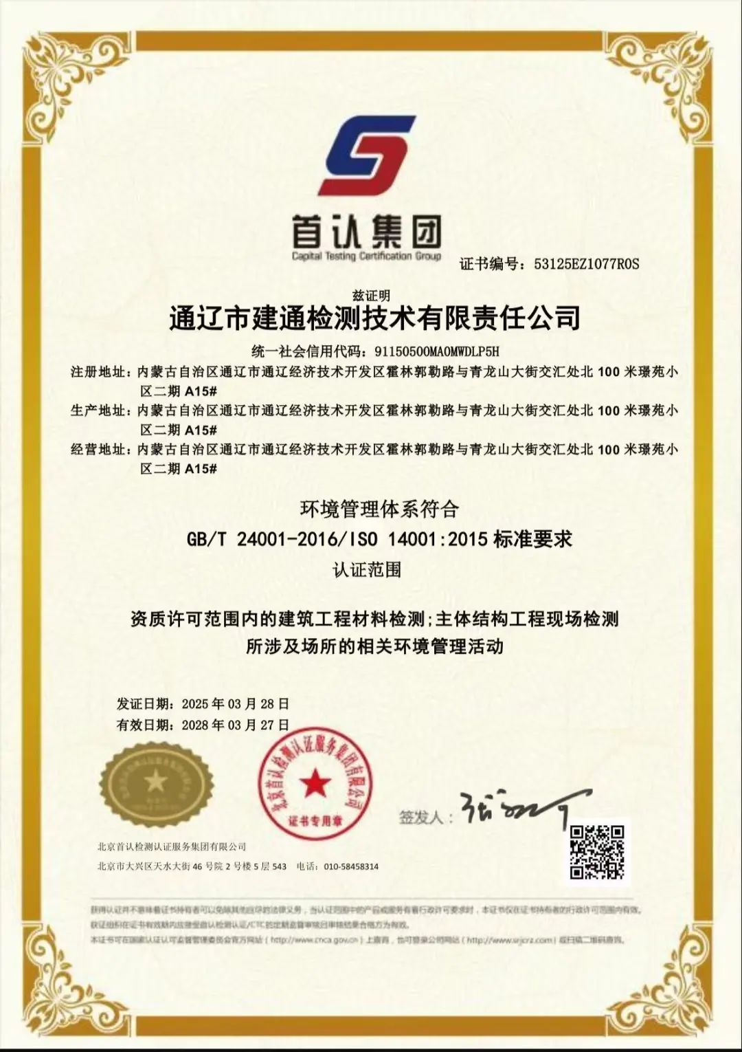 ISO14001环境管理体系认证通过,彰显了建通检测公司对环境保护决心。在当今全球关注环境问题的背景下,公司积极引入环保技术、推行绿色运营模式,实现经济效益与环境效益统一。