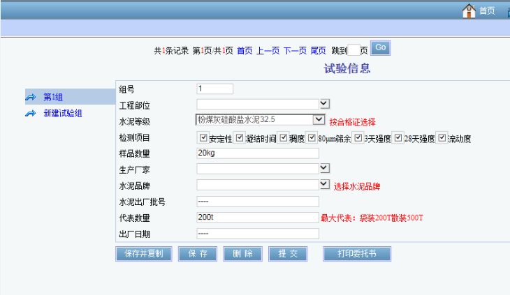 5、 在水泥界面1-4中,用户可完善右半部分信息内容,填写完成后点击保存,确认无误后,点击提交。需要继续委托的用户只需点击返回按钮即可回到上一界面。